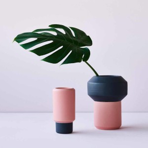 Fumario 陶瓷拼色花瓶(桃粉/藍灰、H 16.5cm) -