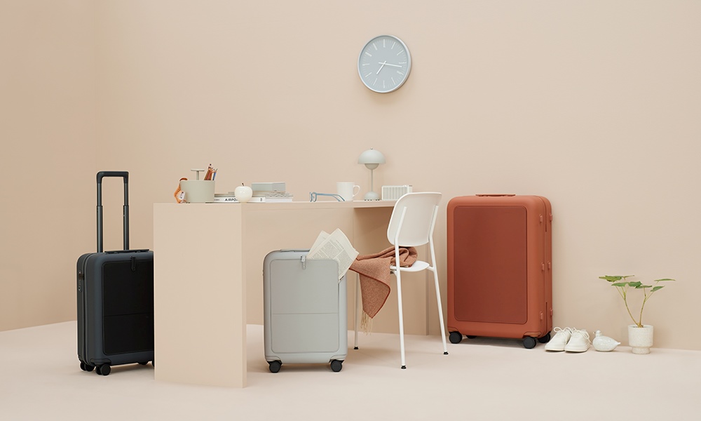 日本行李箱品牌 Moln,致力打造如皮革包般自然貼合手感、可輕鬆攜帶的設計,透過對於細節的講究,行李箱巧妙融合了原創美學與實用機能;安靜且滑行順暢的輪組、統一色調的原創零件,皆展現出設計上的精緻考量。品牌標誌象徵著「隱沒於旅途中雲層之間」的意象,被細緻地刻印於箱體前板、提把、拉鍊頭及多處細節之中,為行李箱增添詩意與辨識度。