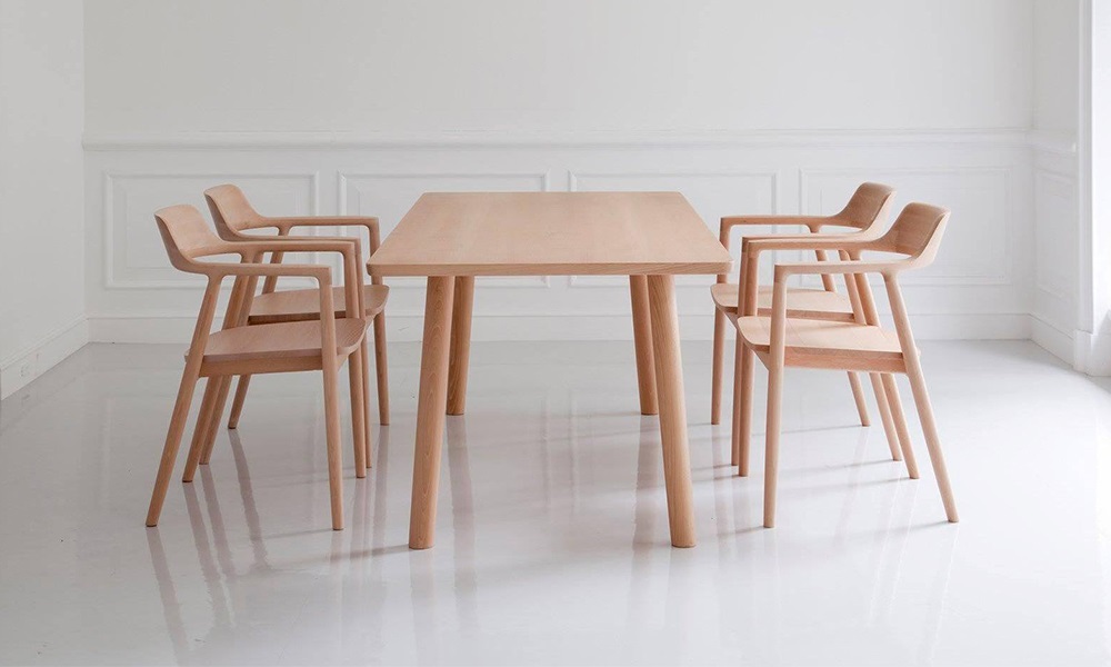 「工藝品工業化」是 Maruni 一直以來的品牌精神,自 1928 年成立於廣島後,創造許多高品質的木製家具。「昭和曲木工廠」為 Maruni 的前身,創辦者山中武夫先生開發的精密曲木技術與工藝精緻量化思維,成為日本木材工業的技術先趨,成功地將工藝品中的繁複技法運用於工業製品上,奠定了 Maruni 在日本家具業屹立不搖的品牌地位。以強調無須思考「without thought」,憑直覺使用極簡設計風格聞名的日本工業設計大師深澤直人,去繁為簡的設計概念與 Maruni 一拍即合,2008 年開始即有一系列的合作,其中包含 HIROSHIMA 與 TRADITIONAL 兩個經典系列。