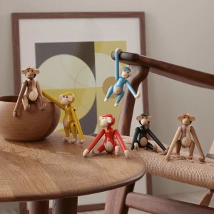 Kay Bojesen 最初以銀器工匠出身,曾在 Georg Jensen 擔任學徒,1910 年學成後創立了名為 Den Permanente 的銀器公司,產品以發揚丹麥設計的功能性特色為主。到了 1930 年代,他開始對木頭感到強烈的興趣,1932 年時以自己名字開設了店面及工作室,並陸續發展成一系列木質動物玩具:臘腸狗、斑馬、搖木馬、以及 1951 年完成的最著名的「木頭小猴」。