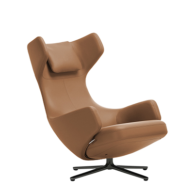 Grand Repos 休憩主人椅(駝棕色皮革、深黑色基座) -