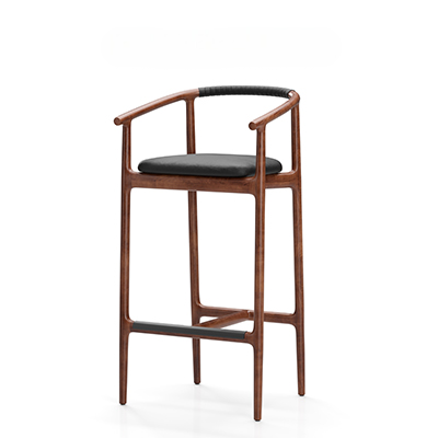 Charlie 吧檯凳(暗棕色皮革、胡桃木) -