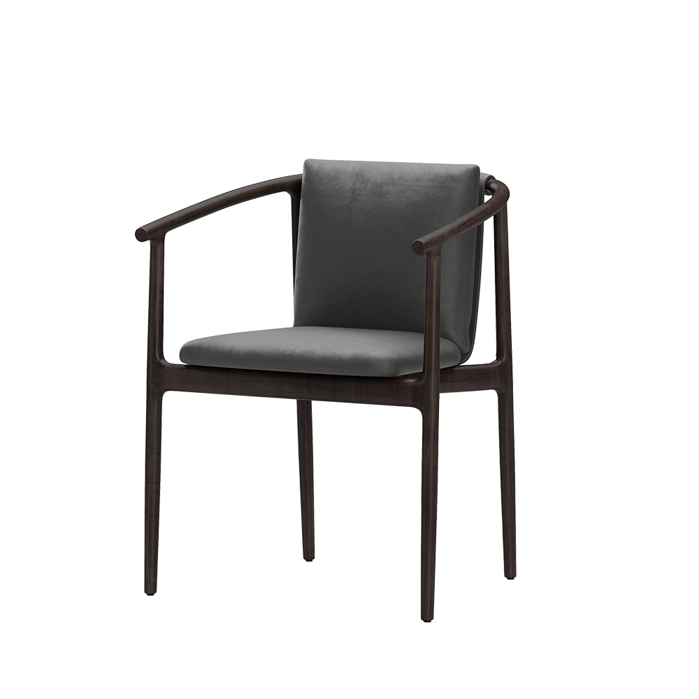 Charlie 扶手餐椅(暗棕色皮革、胡桃木) -
