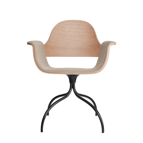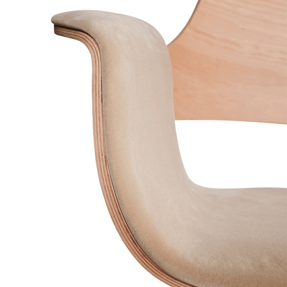 Showtime 高背旋轉扶手椅(自然、天鵝絨坐墊、固定椅腳)