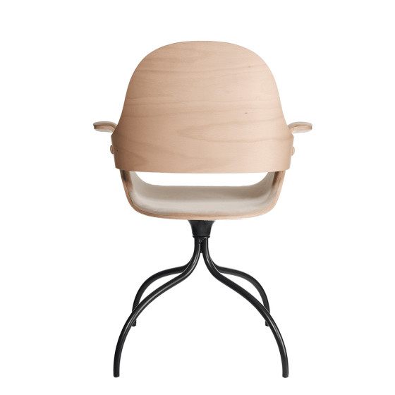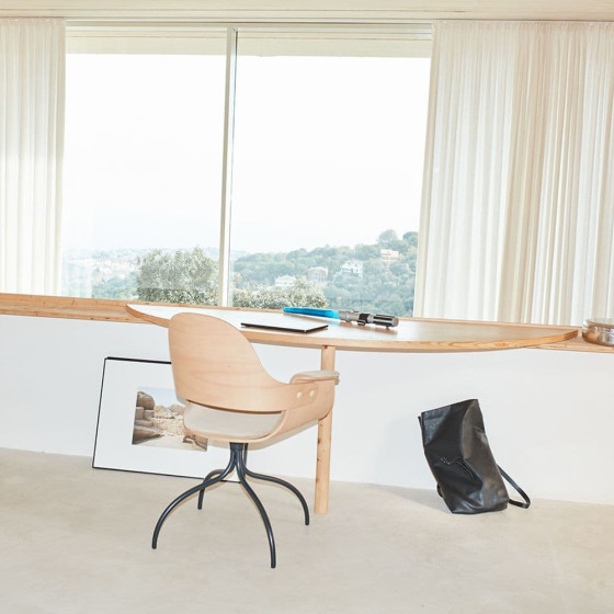 全新《Showtime Chair》旋轉扶手椅,則以更臻成熟的設計語彙呈現,結構簡潔、材質精緻,坐感舒適耐久,適合長時間使用。整體以山毛櫸木打造,搭配高雅色系坐墊,流暢的四爪椅腳增添造型感,展現多樣美學應用的可能。無論置放於居家、商業或辦公空間皆宜,其重新詮釋了經典之美,每一次入座,都能感受到優雅與趣味的完美結合。