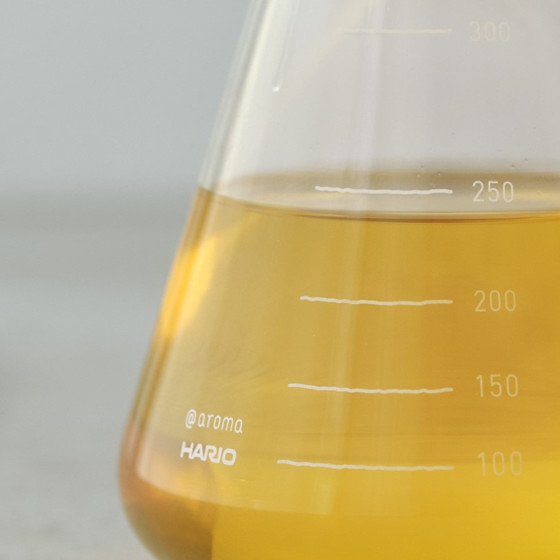 設計靈感源自實驗室常見的錐形燒瓶,結合 Hario 獨有高透明度耐熱玻璃,能優雅呈現擴香液的色彩與光影之美,更特別地是瓶身上的刻度線並非直線,而是波浪線條,增添一股溫柔的視覺美感,同時附有專屬皮革圓墊,雙面異色設計,可隨空間氛圍自由翻轉使用,能夠更自然地融入日常,超越一般單純的香氛產品,而成為能長時間重複使用的生活道具。