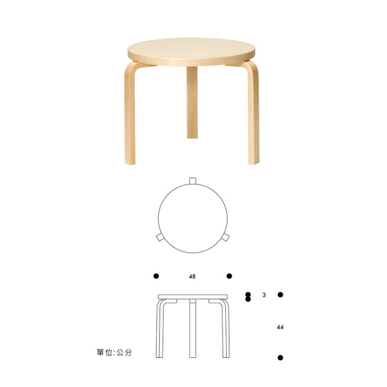 設計於 1933 年,由 Alvar Aalto 所創作的低矮小型圓桌 Table 90D,非常適合作為沙發邊桌或咖啡桌使用。材質採用芬蘭樺木製成,展現自然溫潤質地。而桌面則提供原色樺木、易於清潔保養的層壓板、及適合書寫的黑色油氈桌面等選擇。
