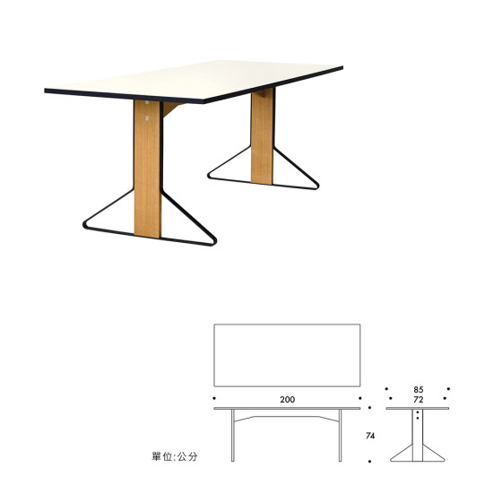 由 Ronan & Erwan Bouroullec 於 2015 年設計 Kaari 系列。Kaari 長桌的線條流暢,彷彿以一筆勾勒而成。Kaari Table 200 公分的尺寸是 6 至 8 人的餐桌及工作桌的理想選擇。