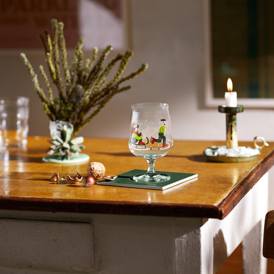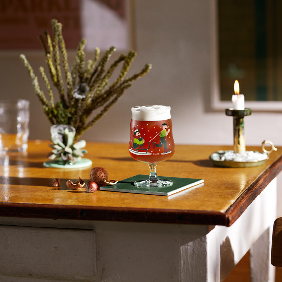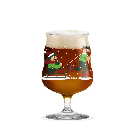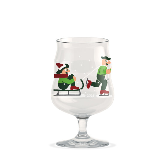2025 推出精美節慶限定版本,杯身印製著 Mikkeller 經典形象人物 Henry 和 Sally,迎接聖誕的溫馨畫面——在飄雪中開心滑冰、玩雪橇,洋溢著節日的愉悅氛圍,不僅為酒杯增添了趣味與個性,更成為品飲時的話題焦點。此系列集結丹麥設計與精釀文化精髓,絕對是啤酒愛好者收藏的完美選擇。