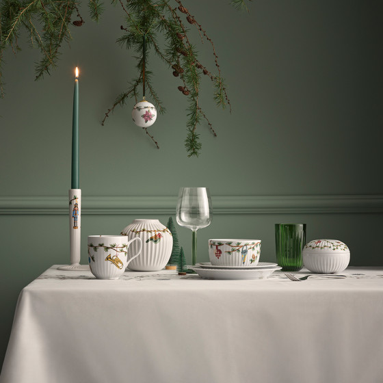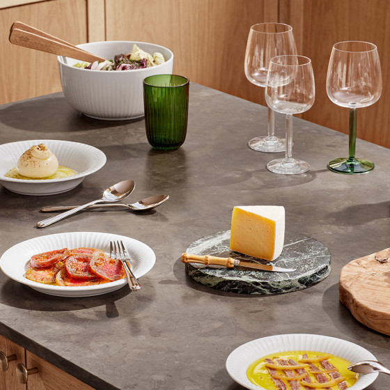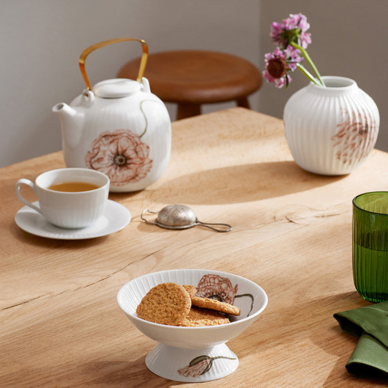 《Hammershøi》系列的設計發想來自藝術家 Svend Hammershøi,為 19 世紀丹麥重要畫家及陶藝家,於 1893 年開始參與 Kähler 的商品設計,推出多款輪廓鮮明、線條強烈的陶藝作品。當代設計師 Hans-Christian Bauer 以此為靈感,將其標誌性的古典紋飾,融合當代設計語彙,轉化為柔和手感的輪花刻紋,2015 年上市推出,便成為最成功的系列之一。