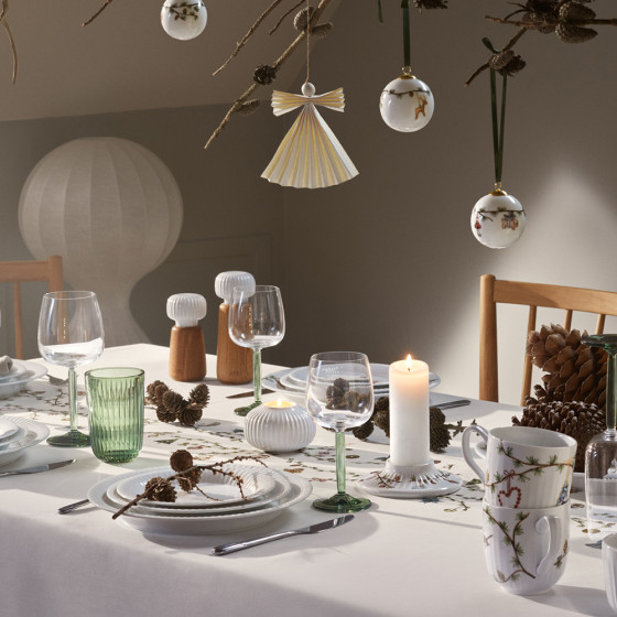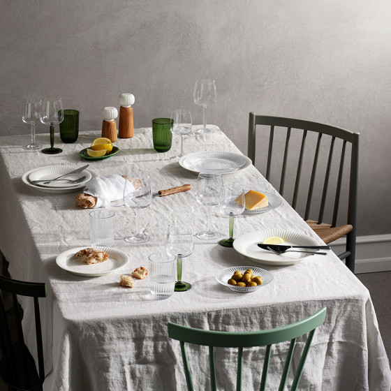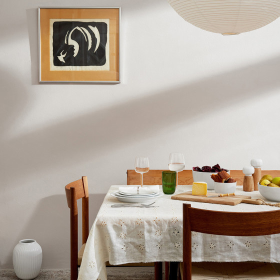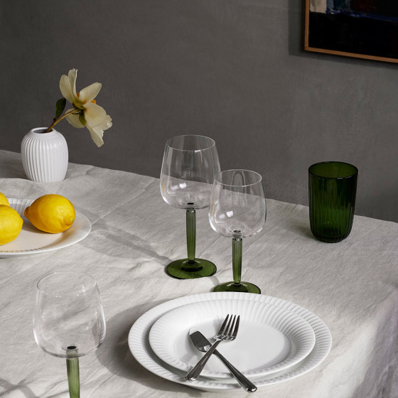 Hammershøi 水杯延續《Hammershøi》系列經典的輪花設計,呈現了典雅的杯身輪廓。當你握住杯身啜飲時,便能感受到 Kähler 驕傲的工藝傳承,杯身重量適中、比例均衡,而標誌性的輪花設計也提供良好的握感,無論日常使用或節慶場合都十分合適。