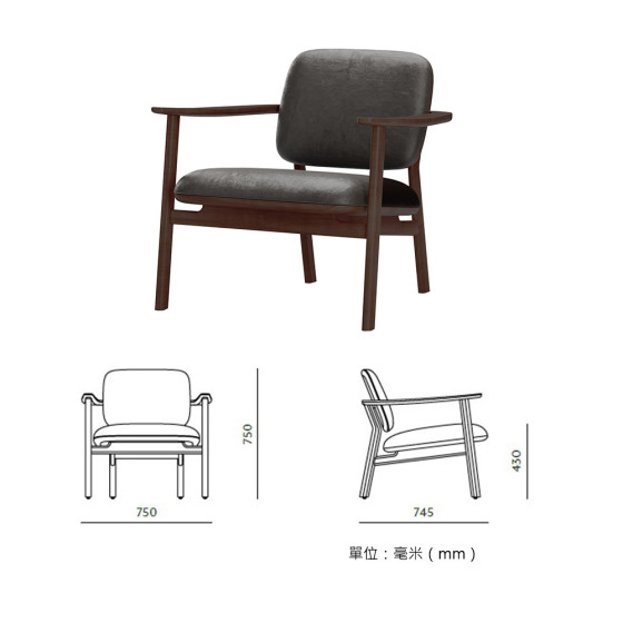 Fauteuil de Salon 休閒扶手椅(胡桃木扶手、深灰布料座面、深黑椅腳) -