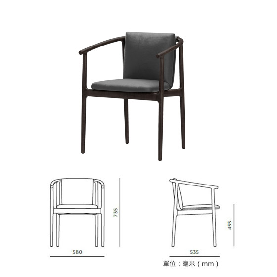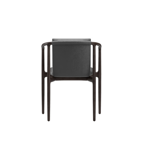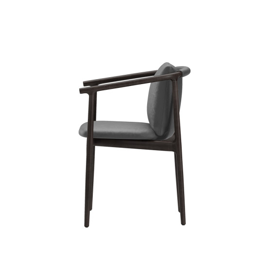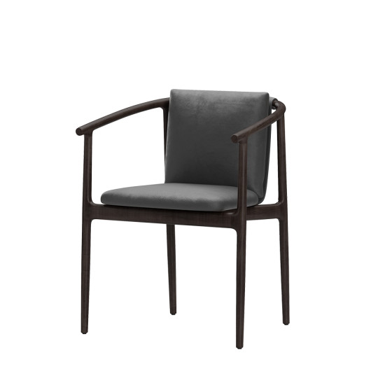 Charlie 扶手餐椅(暗棕色皮革、胡桃木)