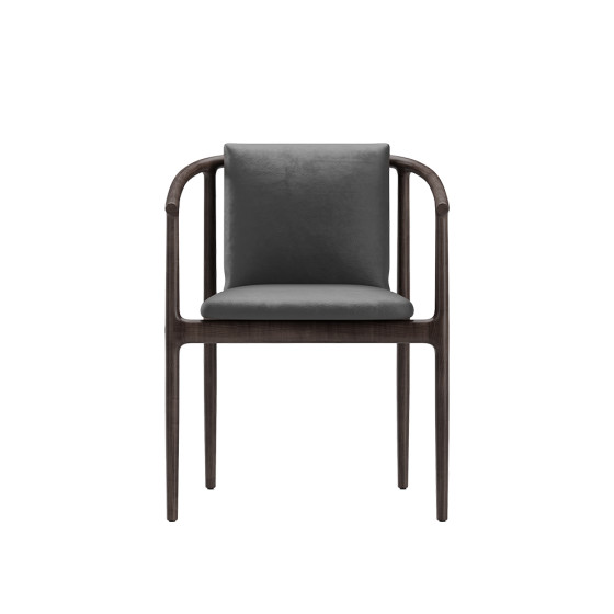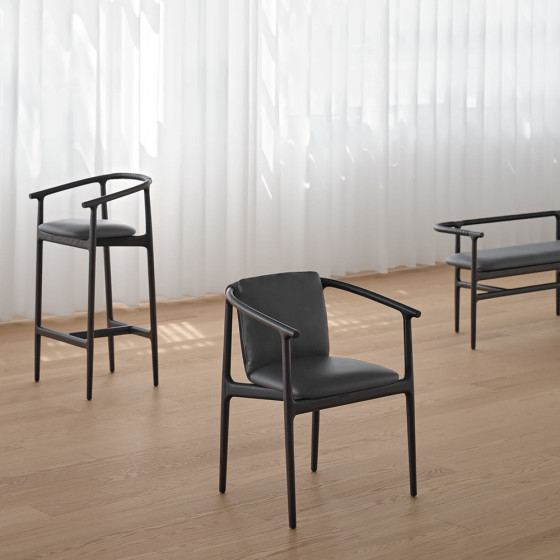 《Charlie》 系列的獨特魅力,在於雕塑般的過渡線條——木材、布料與纖細框架交織出的曲線和直線輪廓,兼具視覺韻律與實用功能。無論安坐於靜謐休憩之處,或融入熱鬧吧台氛圍,《Charlie》 都是低調中自信的選擇,以柔和的語彙訴說設計的力量,留下令人深刻的優雅印象。