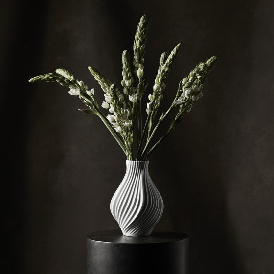 Twist 白瓷花瓶為 Lyngby Porcelæn 所開啟的全新篇章,其靈感取自自然界中的有機形態,如樹皮紋理、螺旋星系軌跡、彎曲花莖,以及古老地層樣貌,透過細膩扭轉的線條,展現出陶瓷工藝的當代新美學。