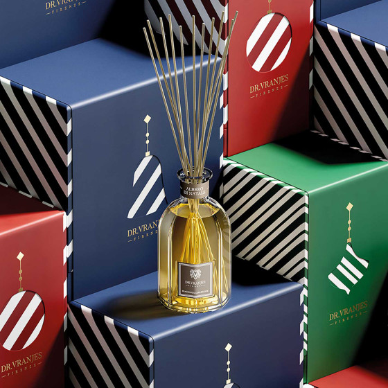 Dr. Vranjes Firenze 於 2025 年推出的條紋禮盒系列,靈感源自珍貴的聖誕玻璃吊飾,將象徵節日歡慶的經典符號,以繽紛色彩重新詮釋,打造出充滿節慶氣息的限量禮盒,是年末送禮或犒賞自己的完美之選。
