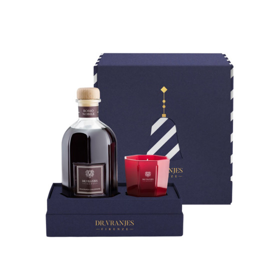 Rosso Nobile 酒神葡萄釀 香氛瓶與蠟燭 藍金禮盒(250ml+80g 蠟燭) -