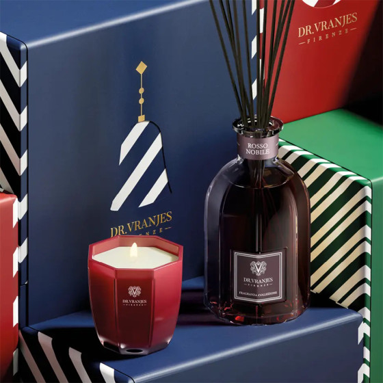 Dr. Vranjes Firenze 於 2025 年推出的條紋禮盒系列,靈感源自珍貴的聖誕玻璃吊飾,將象徵節日歡慶的經典符號,以繽紛色彩重新詮釋,打造出充滿節慶氣息的限量禮盒,是年末送禮或犒賞自己的完美之選。