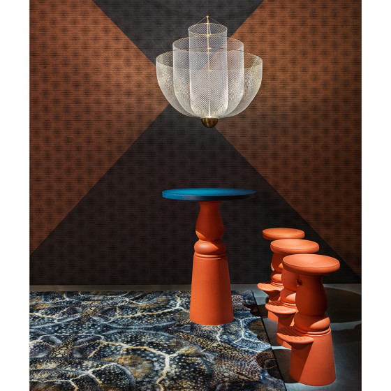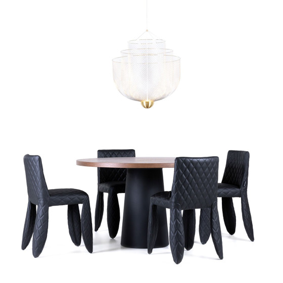 Meshmatics Chandelier 光織夢影吊燈是荷蘭設計師就讀於 ArtEZ 藝術大學時就著手研發的作品,最終進而成為他的畢業代表作,正式發表後更引起設計界一片譁然,他從小就相當熱愛研究機械原理,對於每樣物件的組成方式有著濃厚的興趣,在作品製作初期,他嘗試將極細的金屬絲線編織成立體組件,嘗試做出燈罩的雛型,但礙於手工製作不易且品質難以控制且生產效率不佳,一直難以克服製作難度的問題,在一場展覽會場中 moooi 看見這令人驚豔的燈具作品,期望透過 moooi 首屈一指的現代製程產出系列作品,共同期望著將好設計,像光源般擴散的的更寬更廣。
