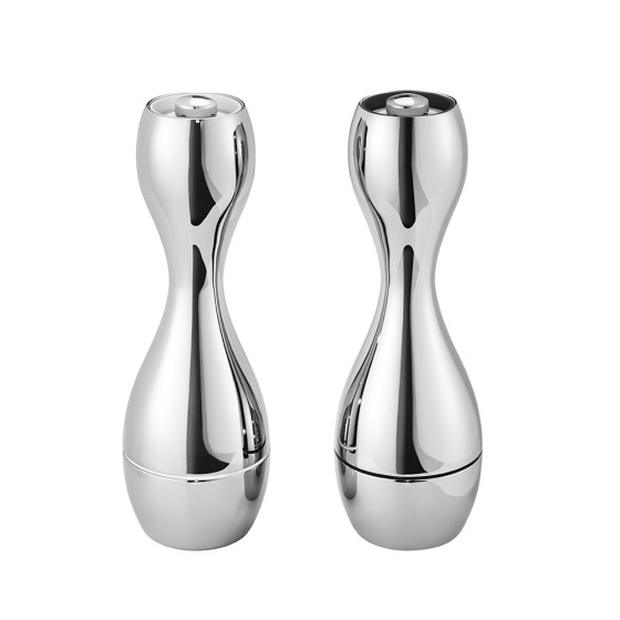 這款不鏽鋼拋光椒鹽瓶套組,採人體工學有機造型,握感舒適,展現出品牌細膩工藝;並採用 CrushGrind® 可調式研磨設計,其開口位於頂部,因此使用時桌面不易殘留鹽與胡椒,兼顧了美觀與實用性。