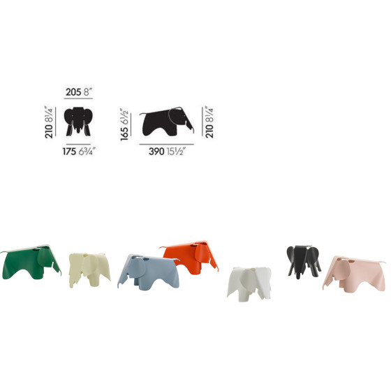 雖然改為塑料材質,但是外型設計不做任何更動,依然保持了傳統曲木時代的美好線條:圓擴微翹的誇張大耳、懸垂及地的彎彎長鼻和尾巴、厚實穩重的身體和象腿,還有卡通般純粹的天真眼神。