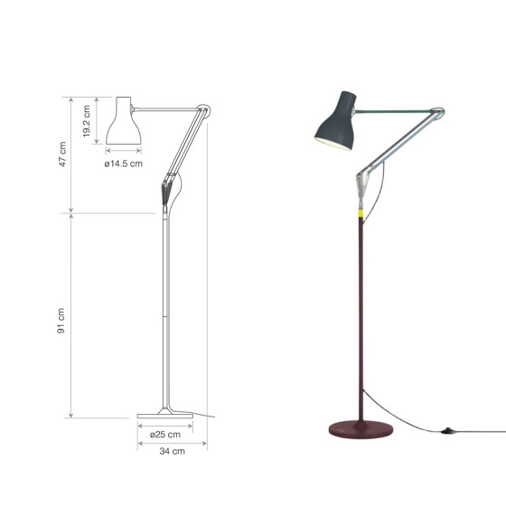 尺寸:底座直徑 25 x 懸臂深 32 x 立燈高 138~175 x 燈罩直徑 14.5(公分)