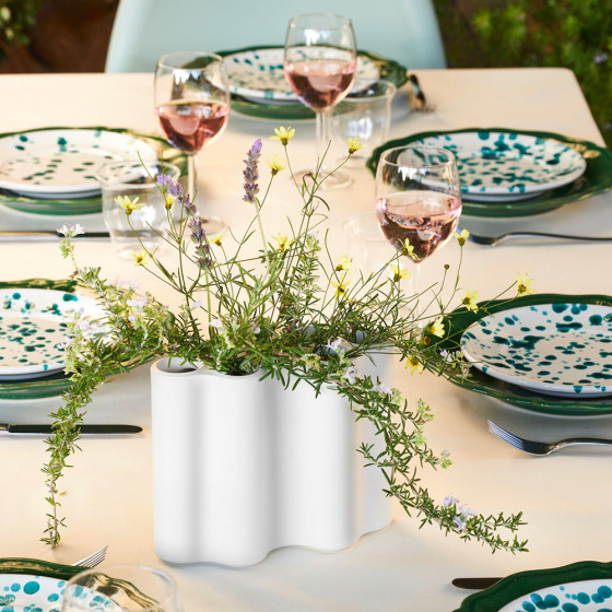 俯視時就像是一朵朵五彩斑斕的雲,以陶瓷為媒材,《Nuage》由多件雲狀模組構成,每一件皆經細膩手工燒製,因釉色流動與燒成條件的細微差異,呈現出各自獨有的表情。起伏柔和的曲面在光線映照下,交織出層層明暗與陰影,彷彿雲霧緩緩流動於空間之中。無論隨意插入一枝花、一段枝條或保留空器本身的姿態,都能依照個人節奏自由組合,形塑出屬於自己的雲景構圖,在日常空間裡,靜靜感受賞雲的純粹與從容。