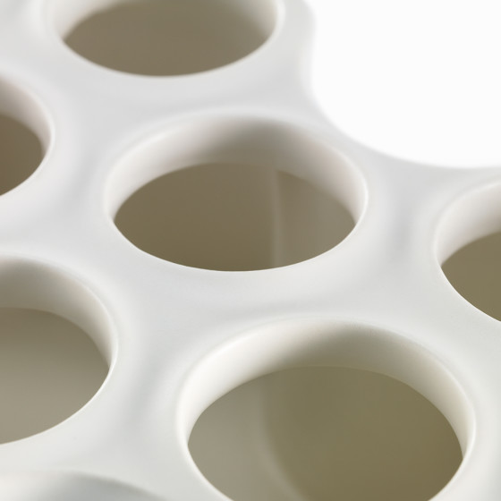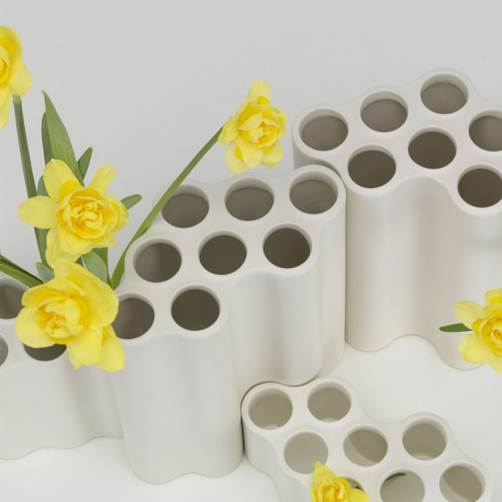 俯視時就像是一朵朵五彩斑斕的雲,以陶瓷為媒材,《Nuage》由多件雲狀模組構成,每一件皆經細膩手工燒製,因釉色流動與燒成條件的細微差異,呈現出各自獨有的表情。起伏柔和的曲面在光線映照下,交織出層層明暗與陰影,彷彿雲霧緩緩流動於空間之中。無論隨意插入一枝花、一段枝條或保留空器本身的姿態,都能依照個人節奏自由組合,形塑出屬於自己的雲景構圖,在日常空間裡,靜靜感受賞雲的純粹與從容。