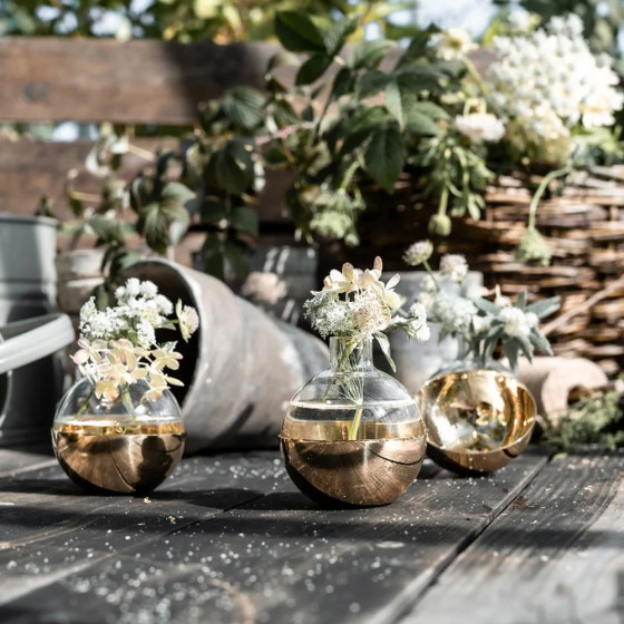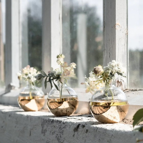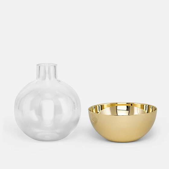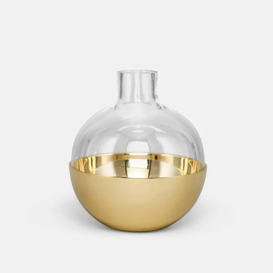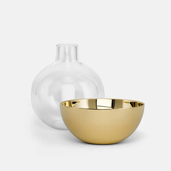 Pomme 這個名字來自法語中的「蘋果」,借用它自然優美的有機形式,打造出圓潤球形外觀,玻璃瓶身與黃銅底座並可分開使用,瓶身可做為切花花器,而底座則可作為燭台運用,巧妙的靈活設計,適於家中不同角落。