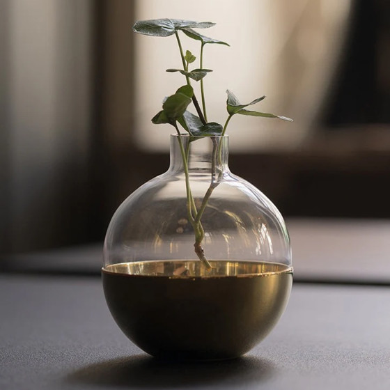 Pomme 蘋果玻璃花器(小、黃銅)