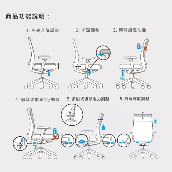 辦公椅調整操作方式請參考影片(點此觀賞)