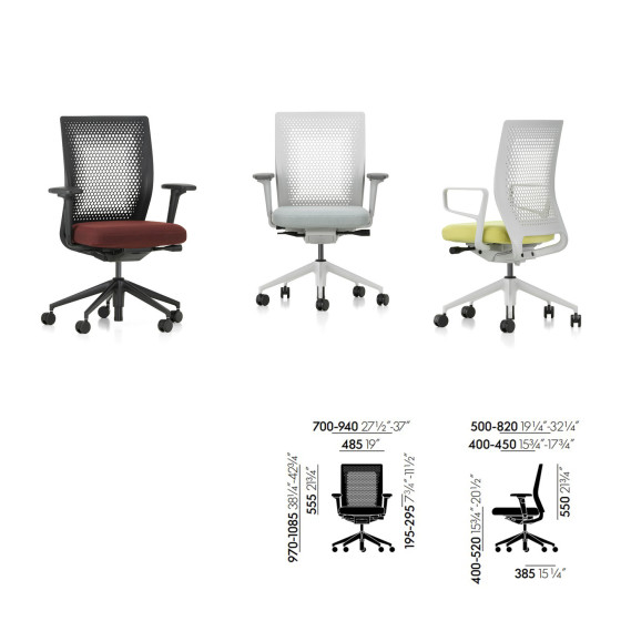 「坐起來舒服」是 Antonio Citterio 在設計創作過程當中唯一且堅持的目標。《ID Air》特色在於一體成型的輕透椅背,以高科技塑料材質製成,專利蜂巢孔洞設計具備彎曲韌性,又不失支撐強度,能隨著乘坐姿態伸展調整;而穿孔塑料材質相較於布質面料,人體接觸感受更加透氣清爽,清潔殺菌亦是格外容易,在愈來愈注重工作環境消毒與否的當下,提供一款舒適度及清潔性兼備的辦公椅新選擇。