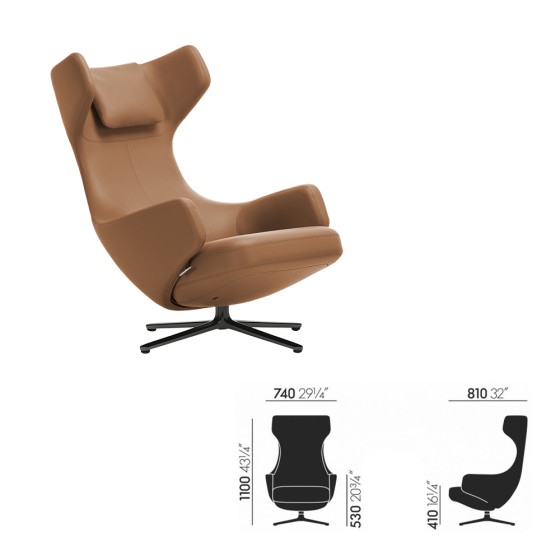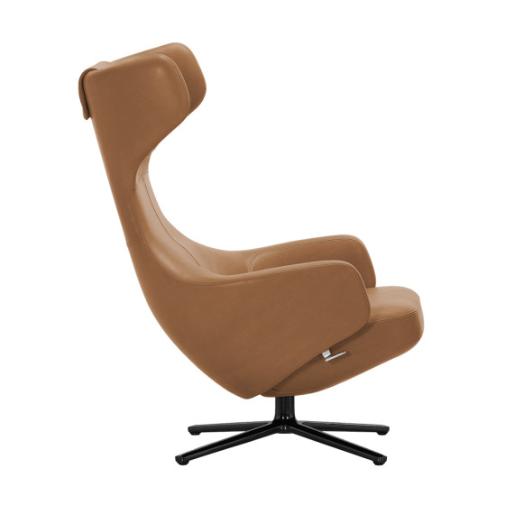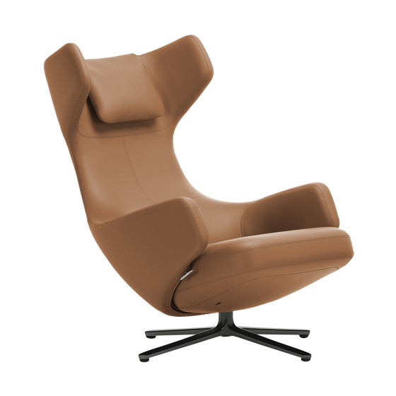 Grand Repos 休憩主人椅(駝棕色皮革、深黑色基座)