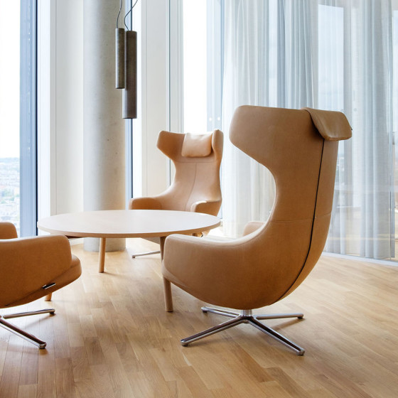 Antonio Citterio 一反義式熱情作風,《Repos》外觀線條簡潔,覆裹著色彩雅緻的頂級布料或者皮革,凝鍊出一派低調奢華;寬闊的座墊、扶手與高靠背,提供全身絕佳支撐,在視覺及乘坐上皆散發著一股安全感。其中更加入了精良的人體力學設計,靠背阻力根據身體重量進行精確調整,讓脊柱於傾斜座椅的過程中獲得完整撐持,在找到最舒坦的角度後即可簡單鎖定。羽毛填充的柔軟頸墊,傾躺時使頭頸深度放鬆;亦可以搭配同系列腳凳使用,讓雙足抬起就能充分享受舒適感。