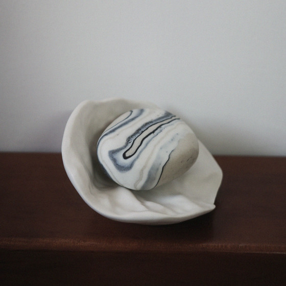 在挪威 Oslo Design Fair 上,Stone Soap Spa 的創辦人 Kjetil 與陶瓷藝術家 Anna Dypsjø Egan 相遇。兩人都深受大自然的啟發,而 Kjetil 在得知這點後,決心邀請 Anna 為 Stone Soap Spa 創作一款專屬的擺皂碟,美好的機緣就此展開。