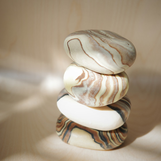 鵝卵石香氛輕柔磨砂皂為 Stone Soap Spa 的經典之作,設計靈感源自於挪威的冰河、森林與海岸線中的一塊塊石頭。以淡雅色彩與溫潤線條,將北歐大自然的靜謐與質樸,化為一顆顆擁有不同香味與色彩的肥皂,彷彿走入北歐大自然,讓香氣、色彩與觸感共同構築專屬於日常的療癒養膚儀式。