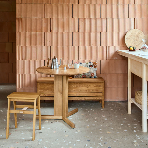 丹麥新興設計品牌 Form & Refine 由 Helle Herman Mortensen、Jonas Herman Pedersen 和 Lasse Lund Lauridsen 於 2018 年共同創始,立志將材料、形式及永續性置於產品的首要位置。品牌設計風格清新、樸素而優雅,並凸顯材質本身原始的細緻質地;其臻選工廠當地附近的純淨素材,從而減少碳足跡,也希望透過與小型工作坊合作建立公平關係,產生正面的社會影響力,同時保護手工技藝。他們深信運用傳統工藝悉心製成的高品質傢俱作品,歷久而彌新,能跨越世代被永久珍藏。