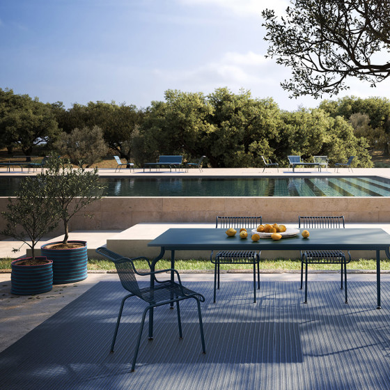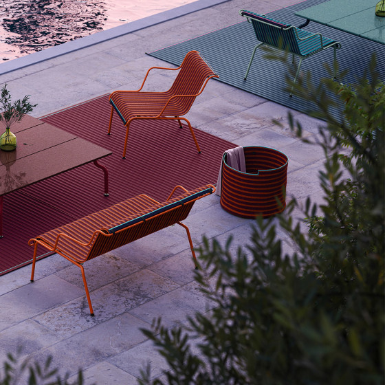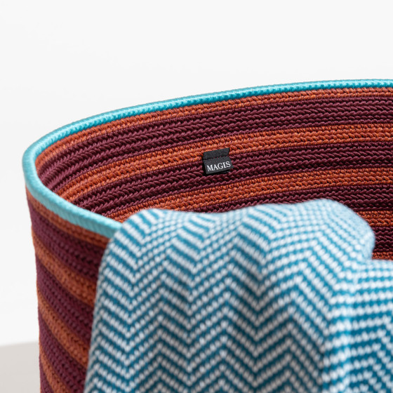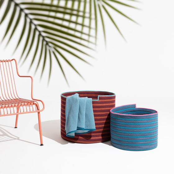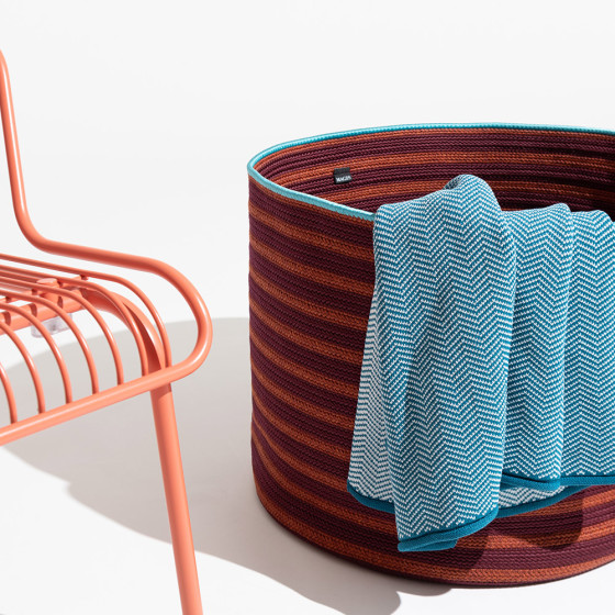 收納籃採用與系列座椅相同的戶外專用編織布料製成,兼具耐用性與柔韌觸感,能從容應對戶外使用需求,同時也十分適合室內空間。簡潔而富有張力的造型線條,呼應 South 系列金屬結構所展現的流動感,使整體視覺再機能與美感之間維持一致而和諧的平衡。