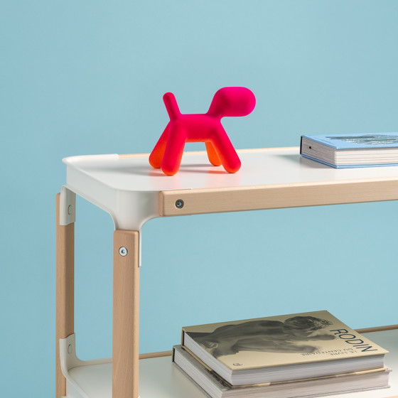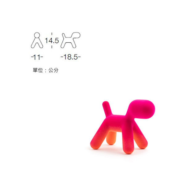 Magis 自 2005 年推出 Puppy 以來,以清新可愛的狗狗造型,深受大人小孩們喜愛,成為 Me too 兒童家具系列中,最具代表性的產品之一。在大家期待之下,於 2023 年釋出了令人耳目一新的漸層霓虹版本,更特別的是表面採用天鵝絨質地,提升觸摸時的親膚體驗,也為 Puppy 犬在可愛造型外,營造出不同以往的夢幻氛圍。
