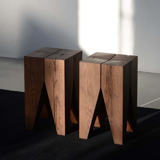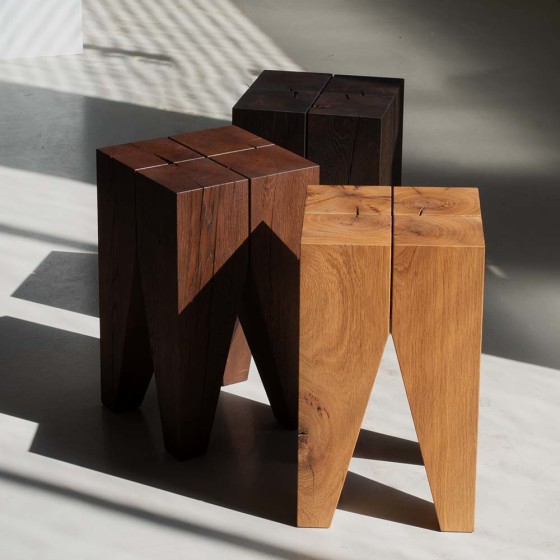 Backenzahn™ 臼齒小木桌和臼齒木凳的差別在於木凳的表面有微微的曲面加工,適合當作椅凳使用,而小木桌則是平整表面,更適合用來當作邊桌置物。