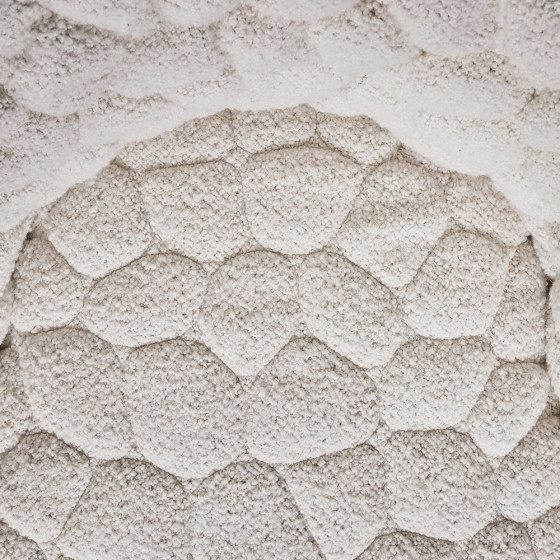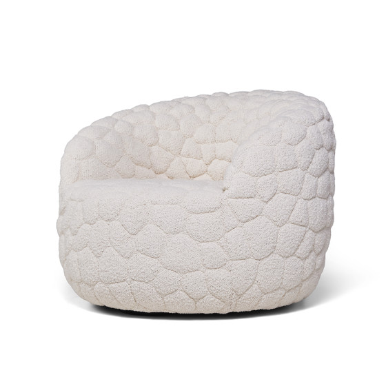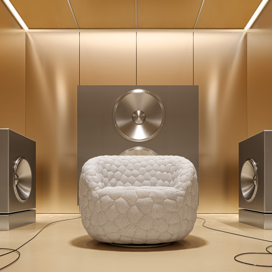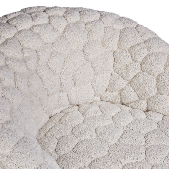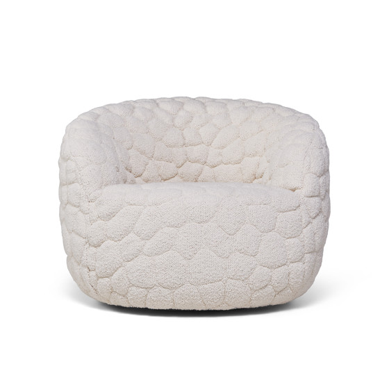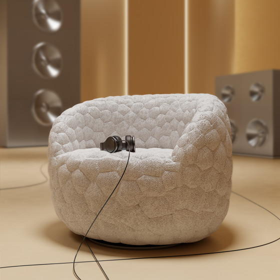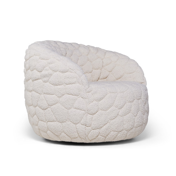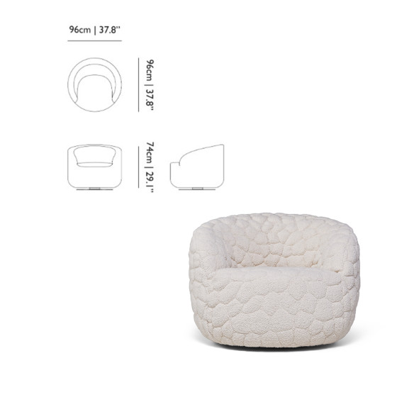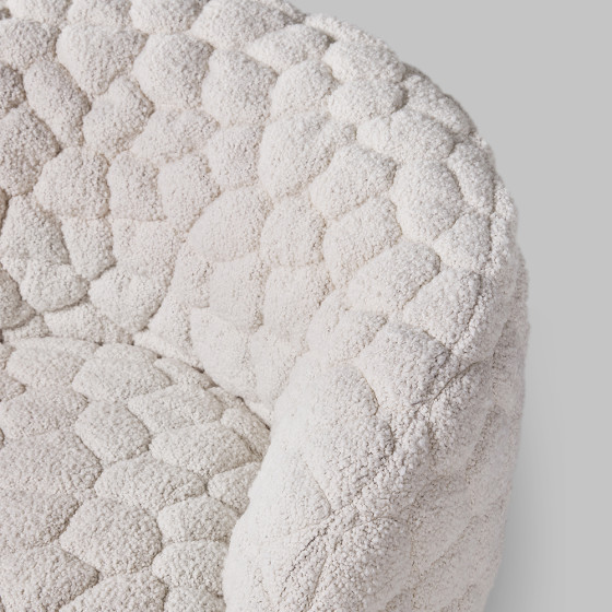 沙發表面採用初剪羊毛、羊駝毛和棉混紡的柔軟布料,搭配厚實椅墊,並帶有輕柔的旋轉功能,營造極致舒適的乘坐感受。另可搭配同系列抱枕與毛毯,不僅增加舒適度,更提供情緒支撐,或是享受片刻靜謐的小憩時光。