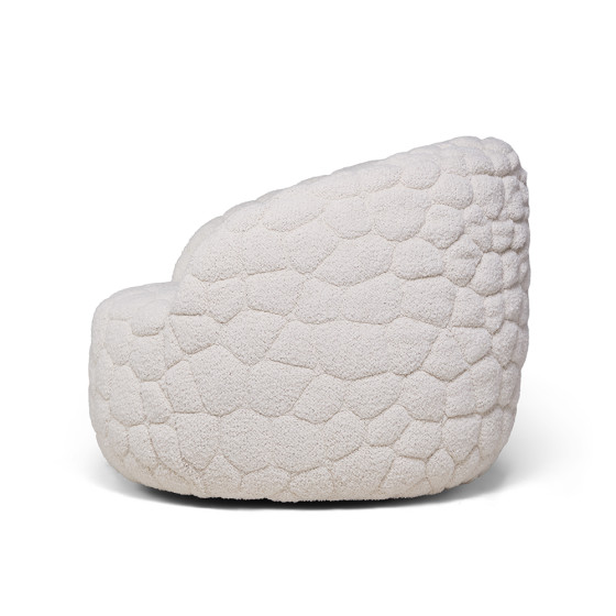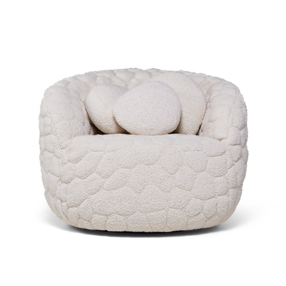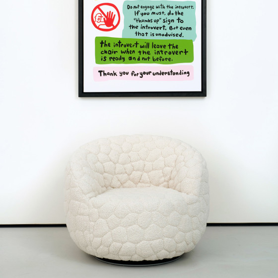 《Introvert Chair》不只是一張舒適的沙發,更像是一道柔軟的情感能量場,或是一個專屬於自己的靜謐避風港。椅身如同擁抱般環繞,包覆於標誌性的柔軟布料之中,是逃離寒暄與過度刺激的專屬空間,同時提醒我們重視自我內省、界線感與情緒健康。