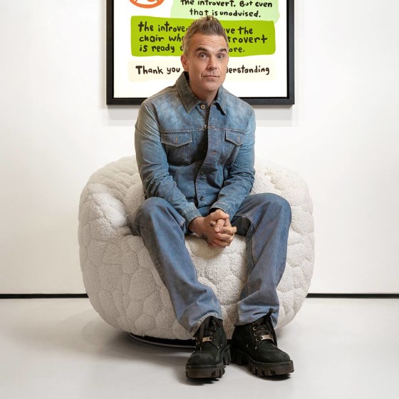 自 2023 年起,Robbie Williams 的藝術作品陸續於阿姆斯特丹、巴塞隆納與倫敦的 Moco Museum 展出。第三場個展《Radical Honesty》更首度發表與 Moooi 跨界合作的設計作品——《Introvert Chair》。
