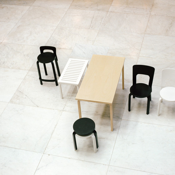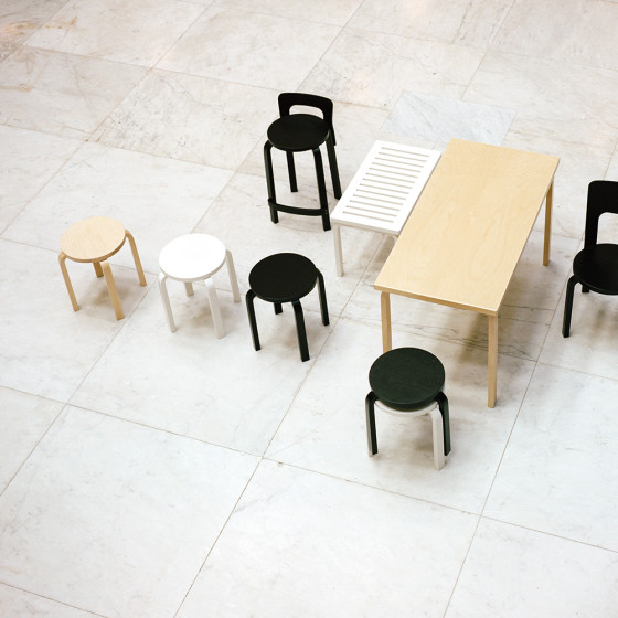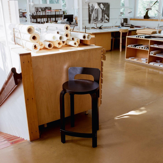 熱愛自然素材的 Avar Aalto,每一件的家具作品幾乎都以芬蘭盛產的白樺木作為主要選材,對他而言,木料呈現出的天然紋理及溫暖色澤,是製作傢俱不可多得的絕佳材料。在當年,已嘗試製作許多曲木傢俱的他,希望能製作一張恰到好處的完美高腳椅,讓傢俱的在日常的使用及習慣,能有更多的彈性與機能。