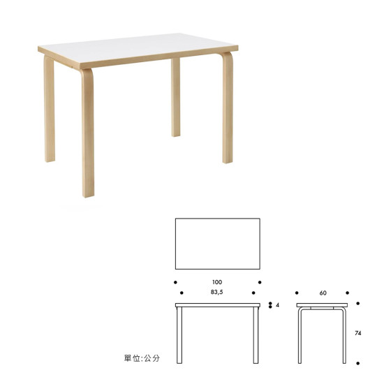 Aalto Table 80B 矩形桌(白色桌面、100 x 60 公分)