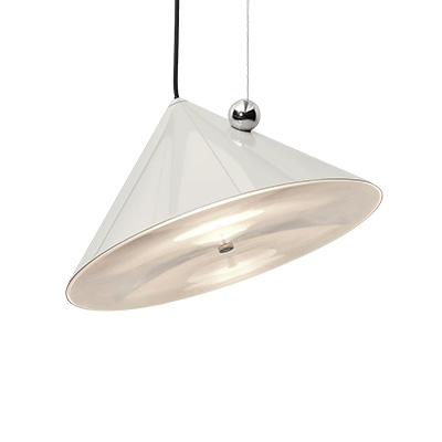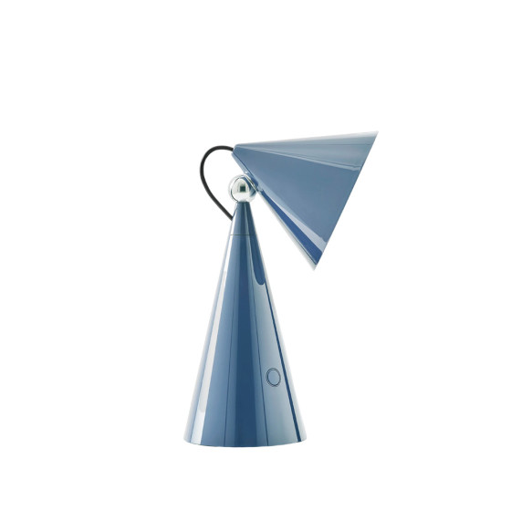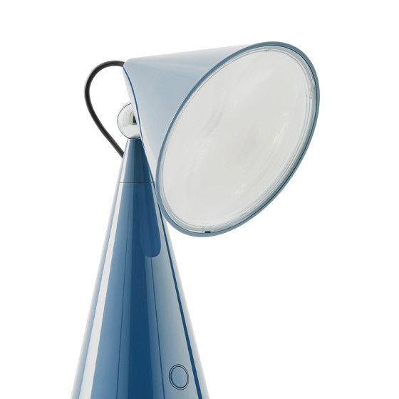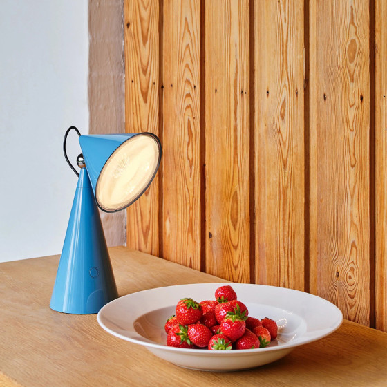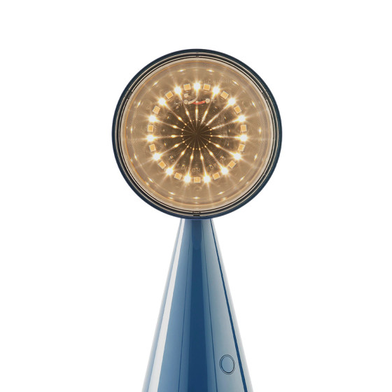 《Pose》無線桌燈以俐落鮮明的輪廓展現獨特個性,圓錐幾何構成的造型簡潔而富雕塑感,並帶著一絲輕巧幽默。限量色「寶寶藍」為整體注入一抹清亮而鮮明的色彩,讓燈具在空間中更顯靈動吸睛。燈具內搭載 Fresnel 菲涅耳透鏡,透過環狀結構將光線集中並放大,使投射出的光束更具方向性與層次感,讓光不再自然散開,而是被精準引導至所需的位置。這項常見於燈塔光學裝置的技術,也讓《Pose》無線桌燈即使以小尺寸呈現,依然能展現精準鮮明、富有表情的照明效果。