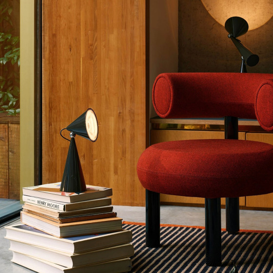 《Pose》無線桌燈以俐落鮮明的輪廓展現獨特個性,圓錐幾何構成的造型簡潔而富雕塑感,並帶著一絲輕巧幽默。小巧的體積中,蘊含鮮明的設計語言,使其不只是照明器具,更像是一件點亮空間的雕塑作品。燈體內部搭載 Fresnel 菲涅耳透鏡,透過環狀結構將光線集中並放大,使投射出的光束更具方向性與層次感,讓光不再自然散開,而是被精準引導至所需的位置。這項常見於燈塔光學裝置的技術,也讓《Pose》無線桌燈即使以小尺寸呈現,依然能展現精準鮮明、富有表情的照明效果。