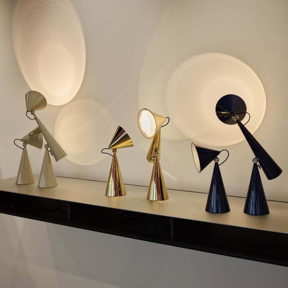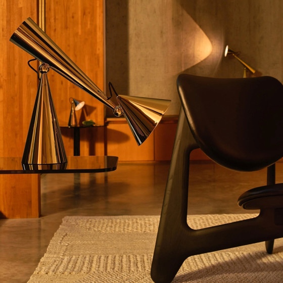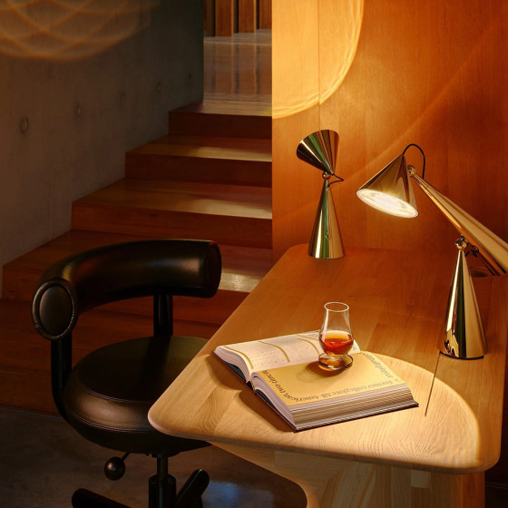《Pose》工作桌燈延續系列標誌性的圓錐幾何語彙,以俐落鮮明的輪廓勾勒出富有雕塑感的造型。燈具內搭載 Fresnel 菲涅耳透鏡,運用常見於燈塔的光學原理,將光線集中並放大,形成清晰而具方向性的光束效果,使光線能被精準控制與導向,提升照明的效率與層次。帶著一絲擬人般的趣味姿態,《Pose》不僅是一盞燈,更像是一件介於理性結構與設計幽默之間的空間雕塑。