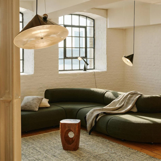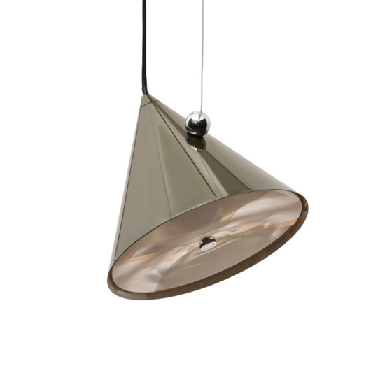 《Pose》光姿吊燈為系列延伸出的吊掛式照明作品,以富雕塑感的造型,為空間帶來更鮮明的視覺存在。設計靈感來自圓錐幾何之間的平衡關係與光學原理,透過簡潔俐落的輪廓,展現《Pose》系列一貫鮮明而富個性的造型語彙。燈體內搭載 Fresnel 菲涅耳透鏡,可將光線集中並導向特定方向,使光的落點更為精準,並在空間中形成清晰而富層次的光影效果,讓光束更具層次與存在感,營造精準且富戲劇性的照明效果。
