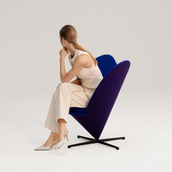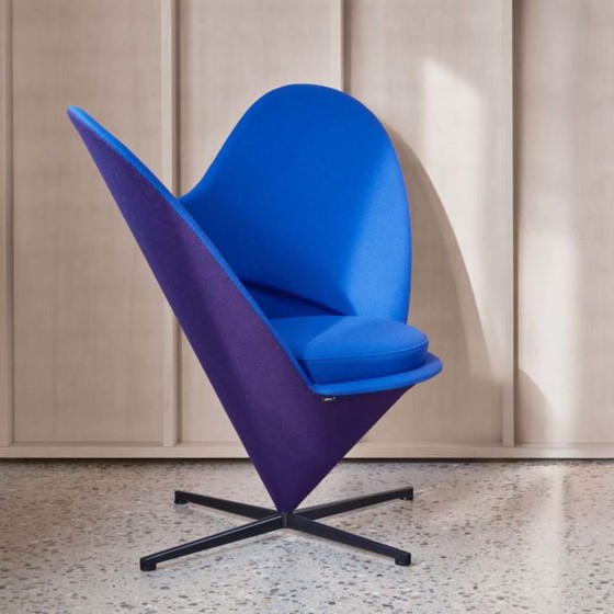 為慶祝丹麥設計大師 Verner Panton 100 週年冥誕(2026 年 2 月 13 日),Vitra 攜手 Verner Panton Design AG 推出 Heart Cone Chair 愛心甜筒椅雙色限定版。椅身前後以不同深淺的藍色交織而成,為鮮明造型增添色彩層次。